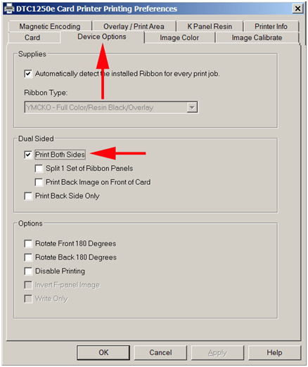 • Click on the Device Options tab, and then check the box for Print Both Sides.