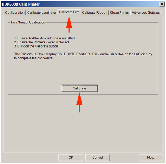 If your DTC4250e ID card printer is not properly recognizing your ribbon, either by not recognizing the type of ribbon or acknowledging that a ribbon has been replaced, you will need to calibrate the ribbon sensors on your HDP5000 printer.