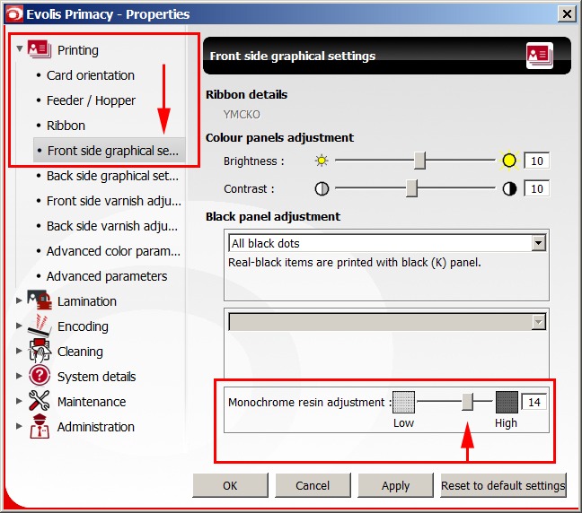 Increasing or Decreasing the power setting with your Evolis Zenius printer is an important step for resolving image quality issues.