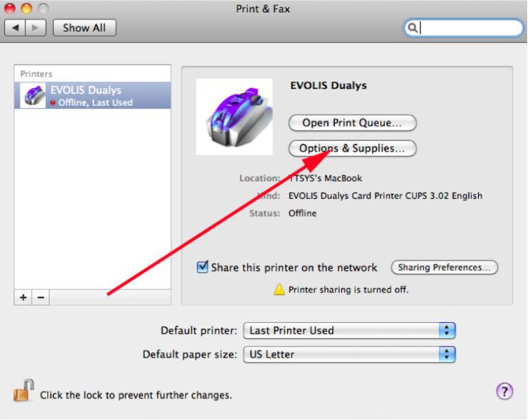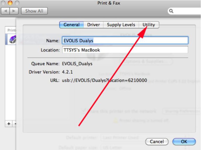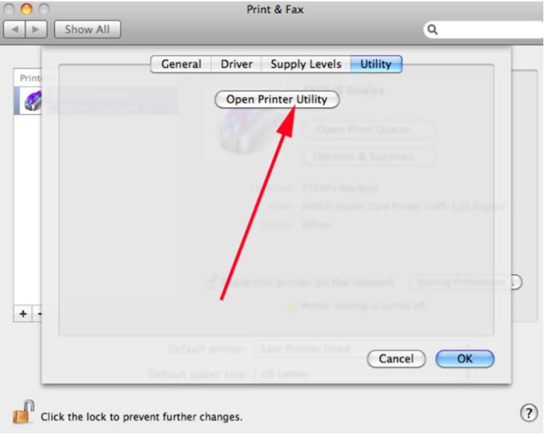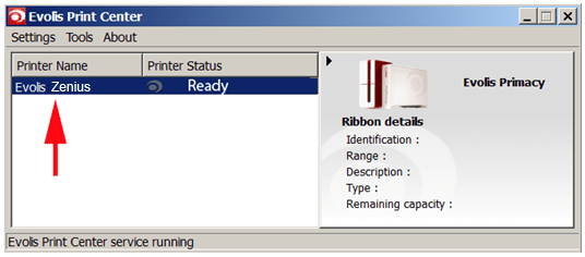 • Open the Evolis Print Center, and double click on the Evolis Zenius printer.