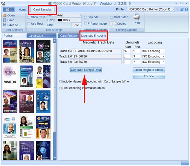 • Click on the Card Samples tab. Click on the Magnetic Encoding tab, and then click the Generate Sample Data button.