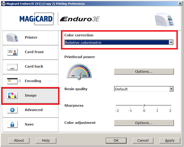 • This will bring up the Driver Settings window. Click on the Image tab, and choose Relative Colorimetric from the Color Correction drop down menu. Click Apply.