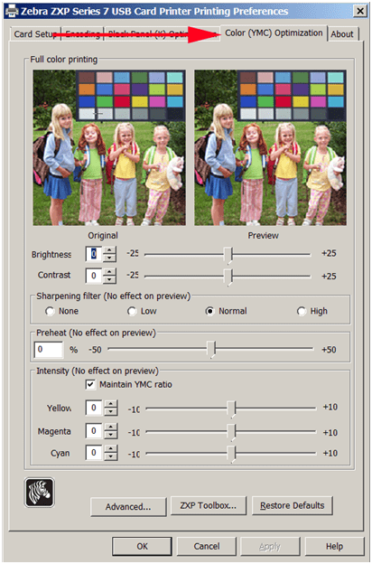If your Zebra ZXP Series 7 printer is having problems printing properly, such as breaking ribbons or printing images too dark or light, you may need to adjust the print head power.